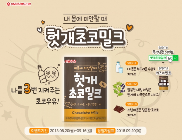 서울우유협동조합, 숙취해소 초코우유 '헛개초코밀크' 출시