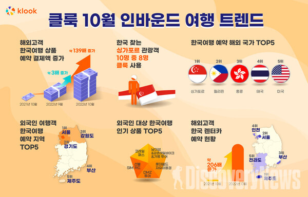 클룩, 10월 한국 여행 예약 1위 해외국가는 싱가포르 .. 한국행 싱가포르여행객 10명 중 8명은 클룩 사용